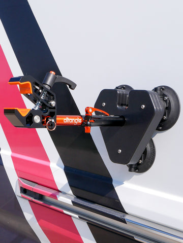 Connect Air: This setup features SeaSucker’s Tri-Cup Base paired with Altangle’s Connect bike clamp, now standard with our Pro Bar for enhanced rotation control and adjustable length. Offering 14 to 18 inches of clearance from the support structure and full 360-degree rotation, this versatile configuration is ideal for maintenance, storage, or display, delivering reliable functionality wherever it’s needed.