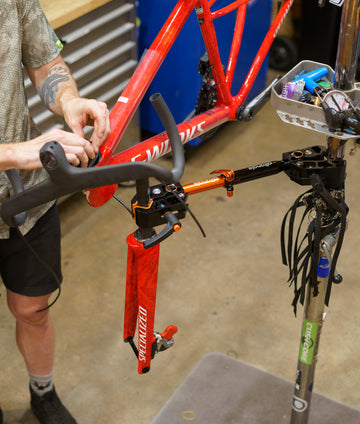 Use the Connect bike stand to service two bikes at once— easily swap wheels, pedals, and parts and service forks. Or, use it as an overflow stand outside, when you’re running out of servicing space in the shop.
