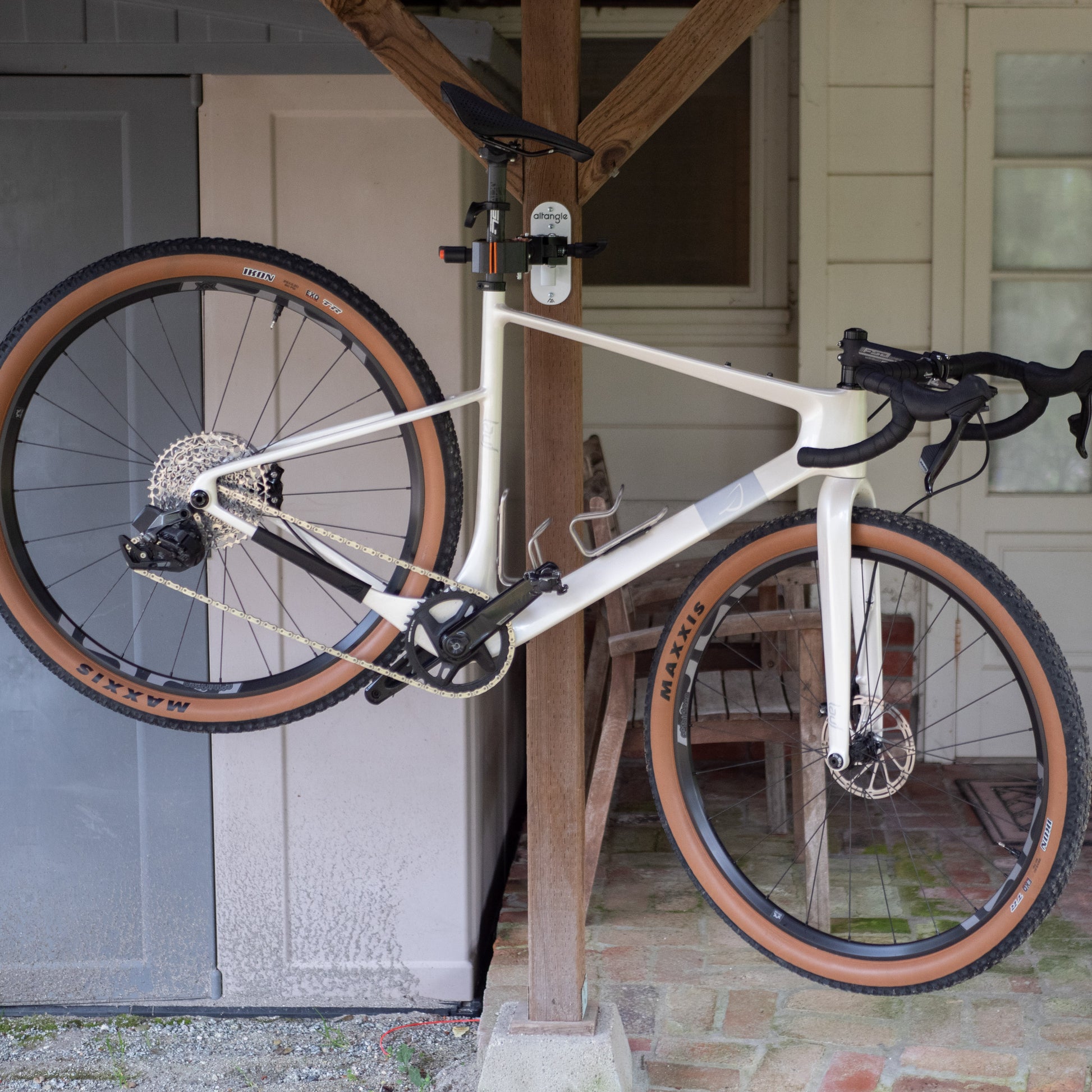 "I’ve been keeping an eye on the Altangle for quite a while, so when I met them at the Bentonville Bikefest I bombarded them with lots of questions. Needless to say, they were all answered and I had to purchase one of them. So far it has worked perfectly every time I have used it to interchange parts between bikes. I hook it up to my old bike stand and hang both bikes right next to each other. I was able to exchange parts with ease."